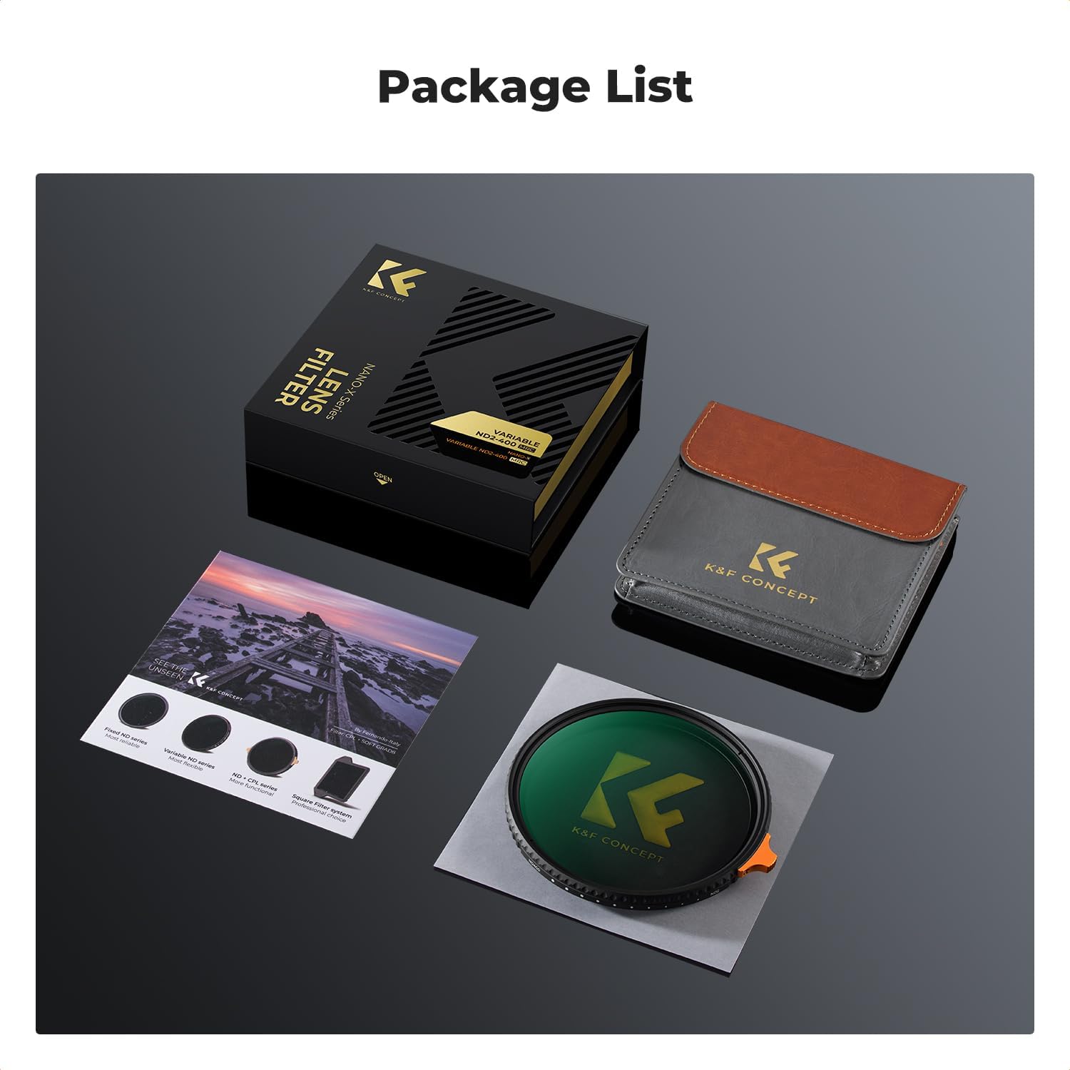 Designed for precision and durability, the K&F Concept 77mm Putter Variable ND Filter features an adjustable design that allows you to easily dial in the desired amount of light reduction, making it ideal for capturing dynamic scenes and achieving long exposure effects.
